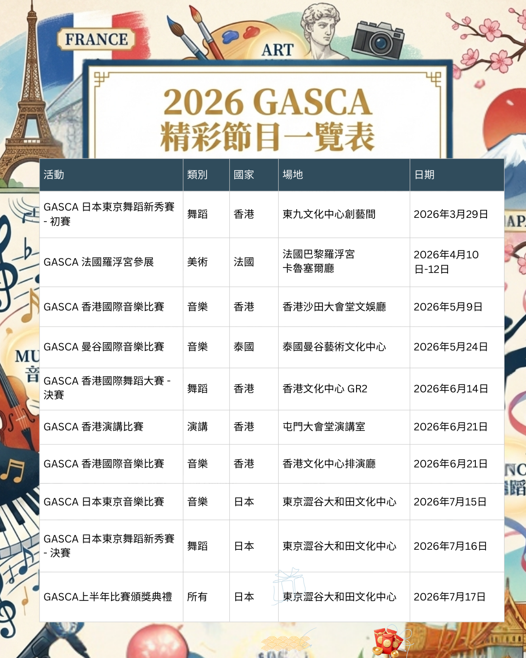 【2026 GASCA精彩節目一覽表】 跨越巴黎、東京、曼谷、香港:2026 GASCA 藝術及音樂盛事正式啟航!