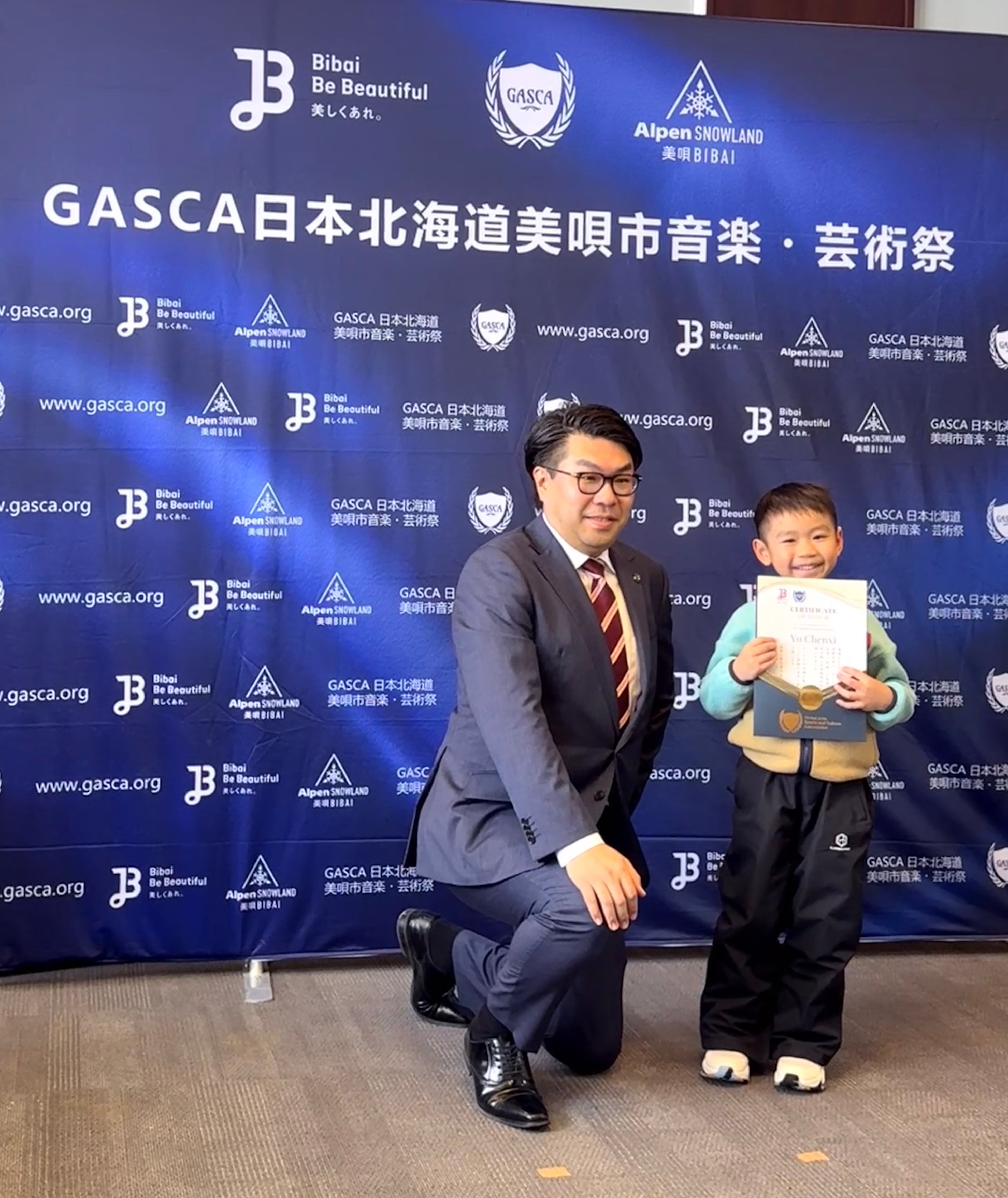 比賽之外,這趟旅程更充滿了珍貴的人生體驗。在安田侃雕刻美術館,美唄市市長桜井恒先生親手將榮譽獎狀頒授給這位來自香港的小音樂家,那一刻,不只是一個獎項,更是一份跨越國界的肯定與鼓勵。