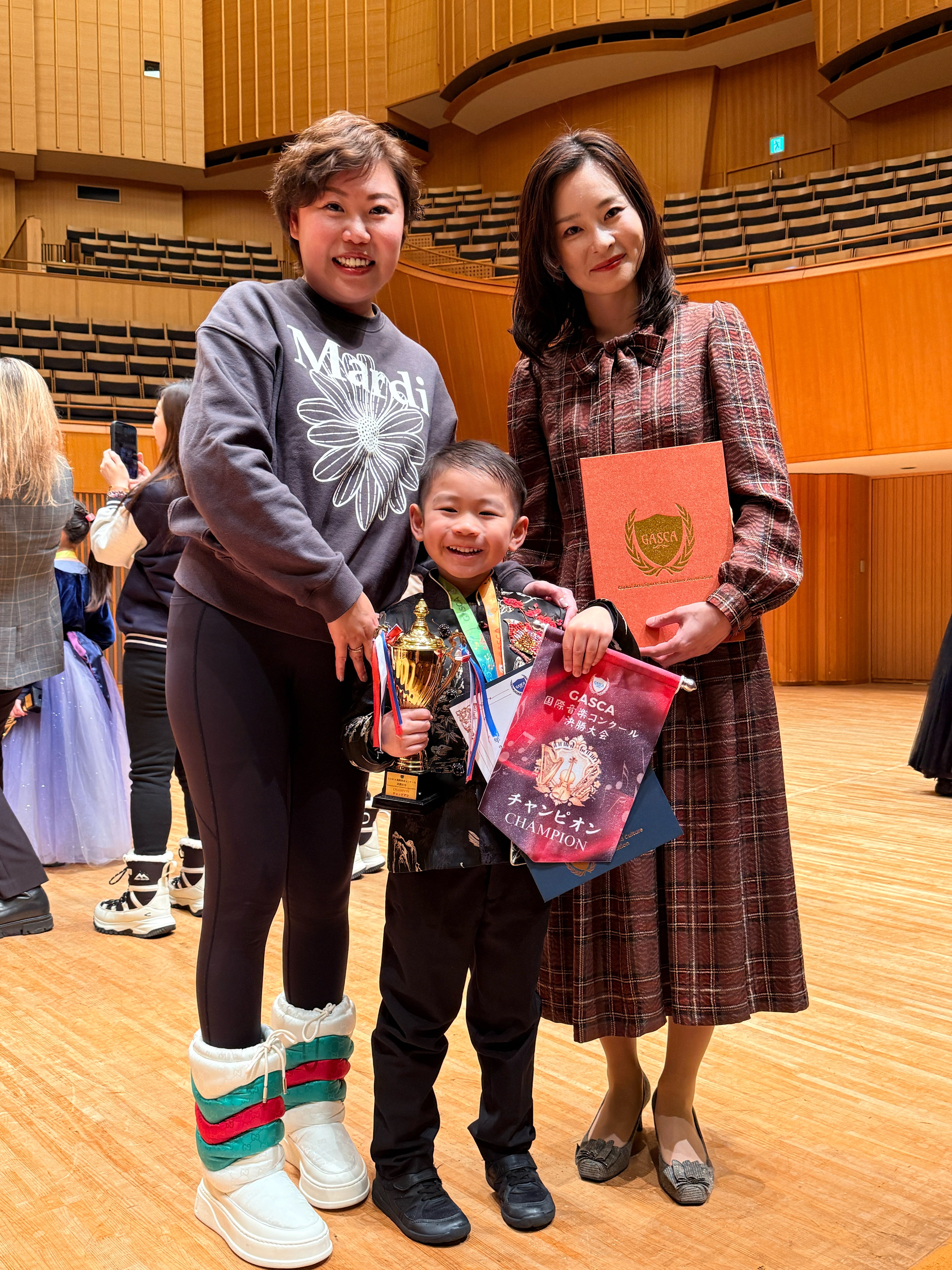 最令人難忘的時刻,莫過於在享譽國際的北海道 Kitara 音樂廳親手接過冠軍獎盃。站在這座世界級殿堂,Jayden 真正感受到了站上國際舞台的震撼與榮耀。